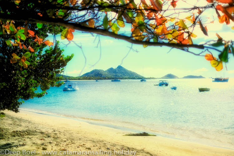 This afternoon we have an early stop at Carriacou. This island is famous cause of its nice bars and friendly people. We enjoy a icecream with beach view. In the background our sailing catamaran Yemaya.