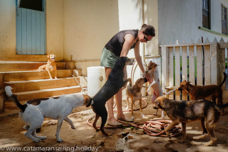 Being a dog on one of these Caribbean islands is not always easy. Susie, who already lives in Union Island for over 20 years, wanted to improve the quality of life for not only these dogs, but for all the animals on the island. She has dedicated her whole life to this. As care giver and vet assistant she lives permanently at the shelter of SGAK (Southern Grenadines Animal Kindness). But because there is no permanent vet on the island she also comes into situations where she is not only the vet assistent. She often has to make decisions where normally a vet decides. When I first saw her and the shelter, I was touched by her unlimited love for all the dogs and cats around her. Being a vet myself, I could see how desperate Union Island needs a vet to help Susie out. Since then, whenever we anchor in Union Island, I visit her to see if some help is needed and to cuddle with all the friendly animals there :-). Thank you, Susie, for being one of those rare persons in the world, who really cares for others! www.animalkindness.net